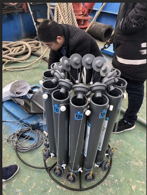 近日,上海市海洋環境監測預報中心采購的美國General Oceanics公司1018型Rosette?多通道水樣采集器順利驗收,采水器的瓶位數為12,單瓶采水器的采水量為2.5L。該型號具有小型化、集成度高的特點,特別適合小船布放,用來采集不同深度的水樣。