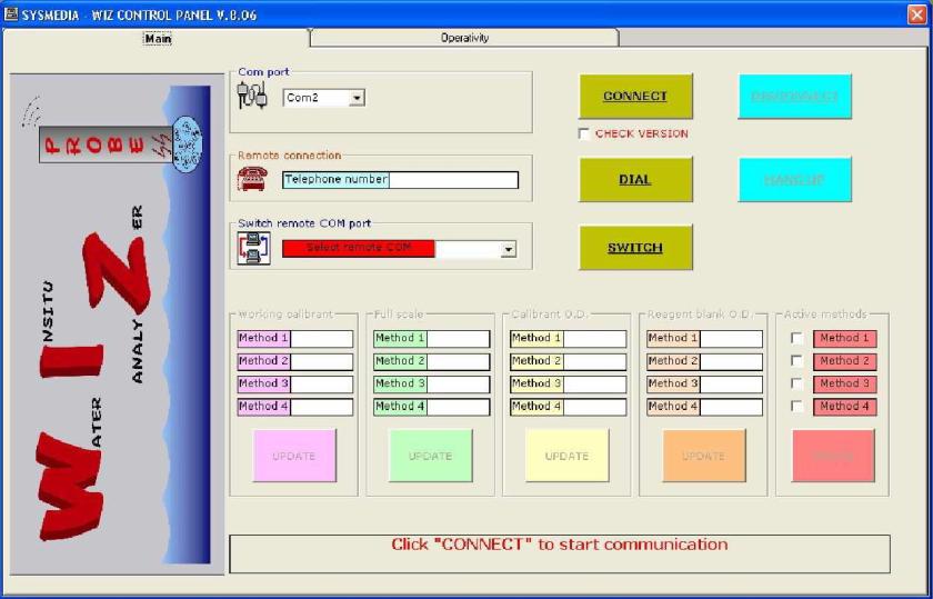 WIZ控制面板軟件(Wiz Control Panel,WCP)通過(guò)RS232串行端口與設(shè)備外部接口相連,即可對(duì)WIZ實(shí)現(xiàn)全功能操控。WCP不但可用于本地PC現(xiàn)場(chǎng)操控,還可用于附加了GSM裝置后的遠(yuǎn)程操控:
