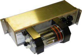 ◎ 干箱中放置電控閥(控制流過分析儀的氣體)、氣流傳感器、計算機和固態繼電器的接口以及8個氣體接口。每個接口具有一個針形閥,用于調節氣體流速。三路電磁閥控制氣體到分析室內(平衡上部的氣室)。干箱與其他兩個箱之間的通訊采用RS485模塊和電纜。